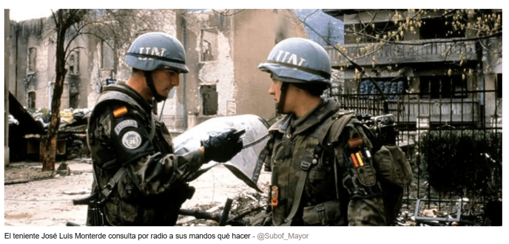 Los croatas, al ver los carros de combate de la ONU, se refugiaron tras ellos. Los soldados croatas pidieron de inmediato protección al teniente Monterde porque si no, los musulmanes los iban a degollar a todos.