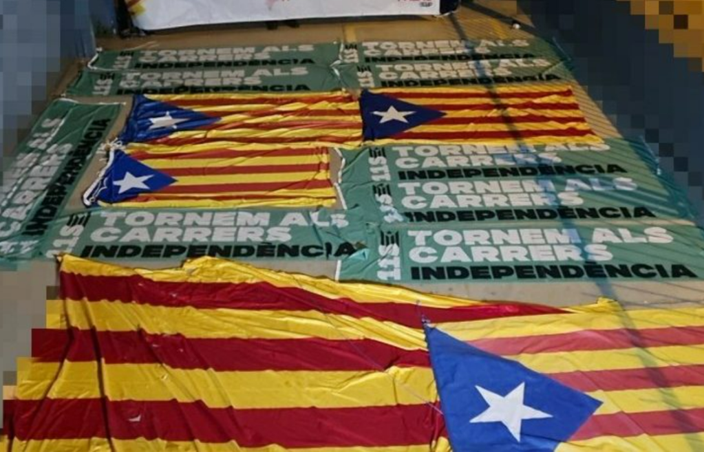 El separatismo ha llenado durante los últimos años las calles y edificios públicos con sus símbolos para ocupar el espacio de todos y la acción de colectivos como Unión de Brigadas les recuerda que Cataluña no es solo de los independentistas.