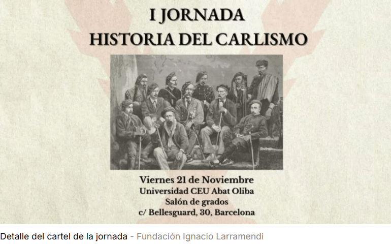 El Instituto CEU de Estudios Históricos y la Fundación Ignacio Larramendi han convocado para el próximo 21 de noviembre la I Jornada sobre Historia del Carlismo. El acto tendrá lugar en el Salón de Grados del campus Bellesguard de la Universidad Abat Oliba CEU (UAO), a partir de las 17 h. El acceso, según apuntan los organizadores, será libre hasta completar aforo.