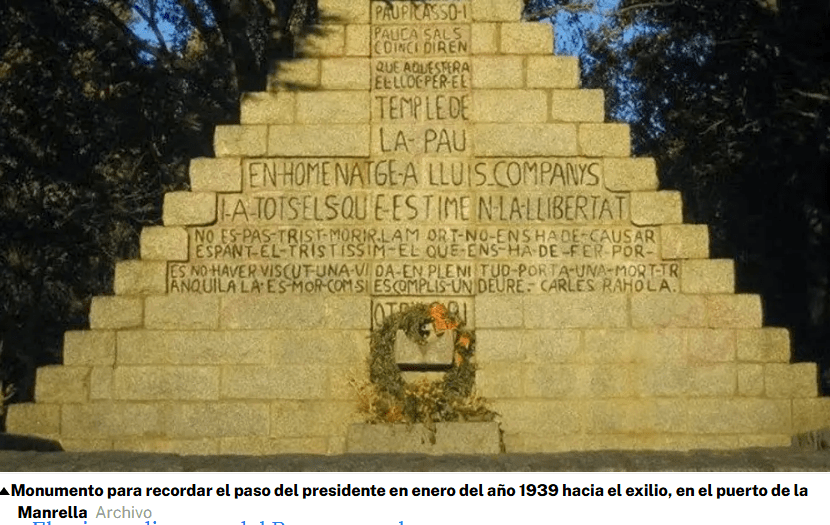 Hoy, un monumento recuerda por donde teóricamente Companys abandonó Cataluña, (en realidad pasó por otro lugar) sin hacer referencia al engaño de Negrín. Y en el lugar correcto, por el que Azaña cruzó primero (Junto a Presidente del Congreso, Martínez Barrios) y horas después susodichos presidentes autonómicos, una placa recuerda –engañosamente- que los “cuatro presidentes” (Azaña, Martínez Barrio, Companys y Aguirre) habían pasado “juntos” la frontera. Todo falso, todo ridículo.