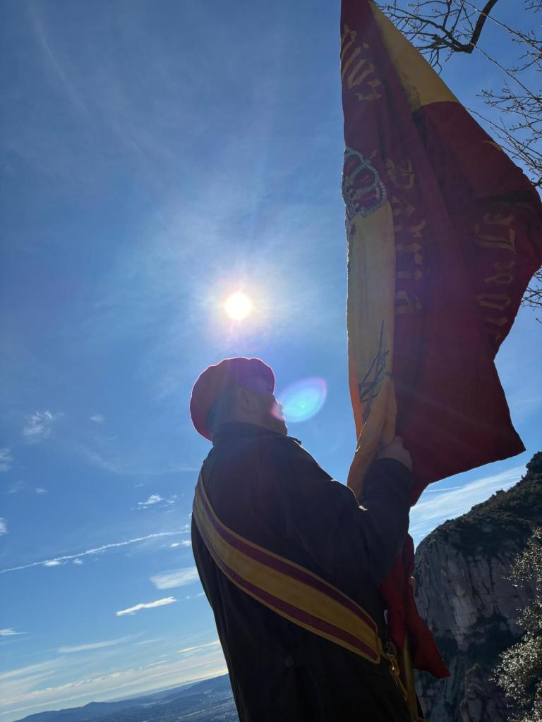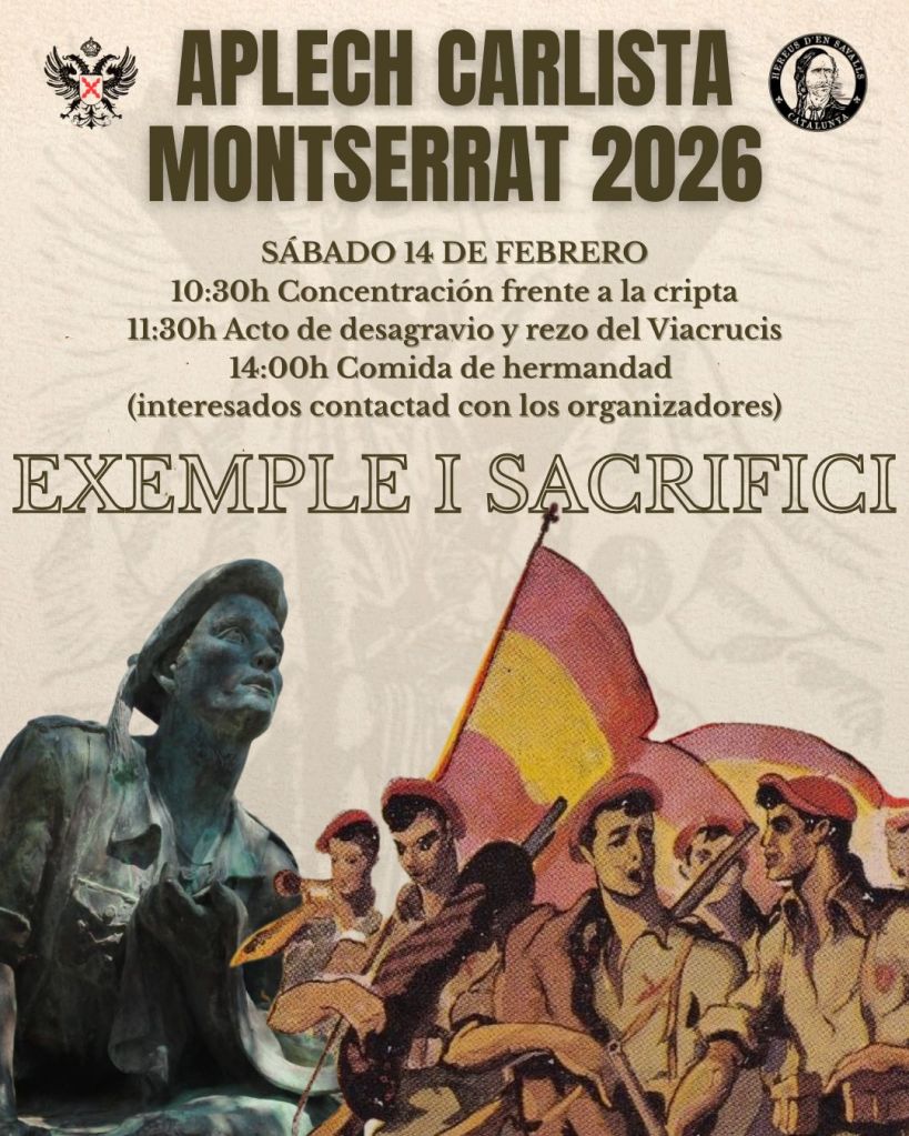 Con motivo de la retirada ignominiosa del monumento al Requeté, que durante décadas se encontraba a los pies de la Basílica de la Abadía de Montserrat, el carlismo catalán, ha vuelto a concentrarse en Procesión ante la Verge de Montserrat, para mostrar su más enérgica repulsa ante la felonía perpetrada con la connivencia de la comunidad y la casta política anticatólica que nos desgobierna. No podemos olvidar, que 319 requetés del Tercio de Nuestra Señora de Montserrat, dieron su vida para restaurar el culto católico y con ello salvar Montserrat de la destrucción marxista-separatista. Durante la Guerra prometieron, si se ganaba, entregar la bandera a la Virgen. En 1961 se inauguró un mausoleo donde reposan doscientos de aquellos requetés.