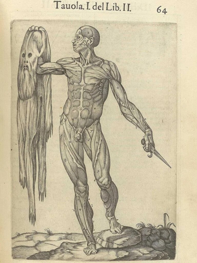 Muchas de las láminas anatómicas que aparecen en la Historia son tomadas de la Fábrica, pero con correcciones, que son explicitadas en el texto. Otras son originales, como el hombre desollado (Libro 2- tabla 1ª) o la Venus con el abdomen abierto (Libro 2-tabla 6ª).