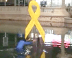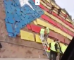 Vean cómo los mossos, impasible el ademán, permiten que coloquen un macro mural separatista que pone en peligro grave a la circulación