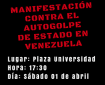 Este sábado en la Plaza Universidad, a las 17:30 horas del día sábado concentración para condenar el Autogolpe de Maduro El pasado miércoles 29 de marzo, en menos de 24 horas el régimen bolivariano de Nicolás Maduro, promulgó la anulación… Leer más ›