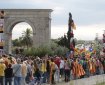 Catalanes reciben en Salt (Gerona) la Diada … con banderas españolas.