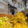 Els Segadors del Maresme» ha volcado este sábado en la plaza de Sant Jaume, frente al Palau de la Generalitat miles de lazos amarillos que han ido retirando en diferentes poblaciones catalanas. Integrantes de este grupo, todos vestidos con monos blancos,… Leer más ›