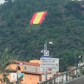 El Día de la Hispanidad, una bandera española gigante en el mismo lugar donde, por la Diada, se cuelga una estelada. Durante el último Once de Septiembre la estelada ya sufrió desperfectos, cosas del mal tiempo. ANTES DESPUÉS