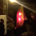 Pasó hoy en la concentración ante el Bruch, en defensa del Ejército. De golpe aparecieron transportes de la Guardia Civil y así fueron recibidos.