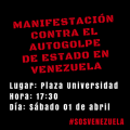 Este sábado en la Plaza Universidad, a las 17:30 horas del día sábado concentración para condenar el Autogolpe de Maduro El pasado miércoles 29 de marzo, en menos de 24 horas el régimen bolivariano de Nicolás Maduro, promulgó la anulación… Leer más ›