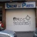Pintada a un local del PSC a Sant Adrià. Primer el discurset de solidaritat amb els «nouvinguts», però volen fer fora hom que no pensa com ells.