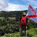 El montañero Alejandro Calderón ondea la Cruz de Borgoña en la cima de una montaña de Costa Rica. Vídeo emocionante de la ascensión.