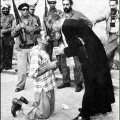 Foto de los primeros días del triunfo castrista. Un opositor es consolado por un sacerdote antes de ser fusilados por los «barbudos» castristas.