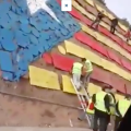 Vean cómo los mossos, impasible el ademán, permiten que coloquen un macro mural separatista que pone en peligro grave a la circulación