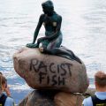 ESTAMOS TONTOS: La Sirenita de Copenhague aparece pintada con la leyenda «pez racista»