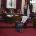 Akelarre populista: se arrodilla ante «Kichi» para pedirle trabajo