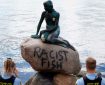 ESTAMOS TONTOS: La Sirenita de Copenhague aparece pintada con la leyenda «pez racista»