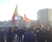 Concentración en Avda Meridiana. Los mossos encapsulan a los patriotas y llevan en volandas a los indepes